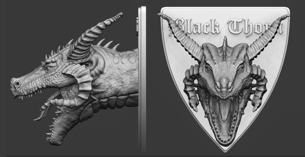 This kit consists of 7 pieces to be assembled to create a Black Thorn dragon head emblem to hang it on the wall or other surfaces.