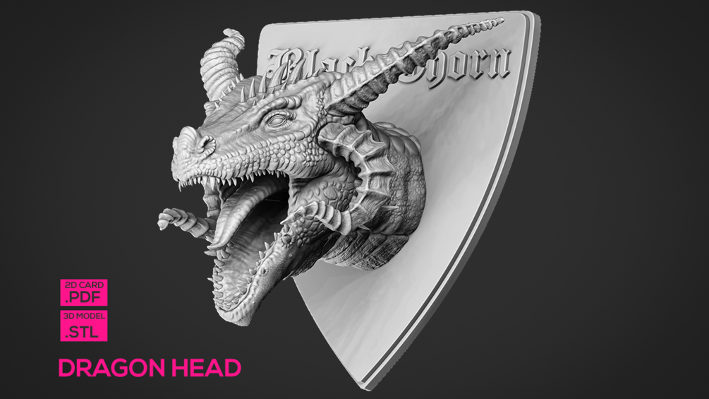 Dragon head 3d Model in .stl format and a ready to print postcard in .pdf format.